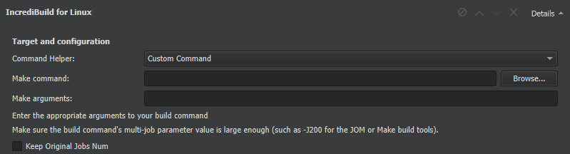 When building with IncrediBuild, you can add arguments and targets for the clean command in Clean Steps .