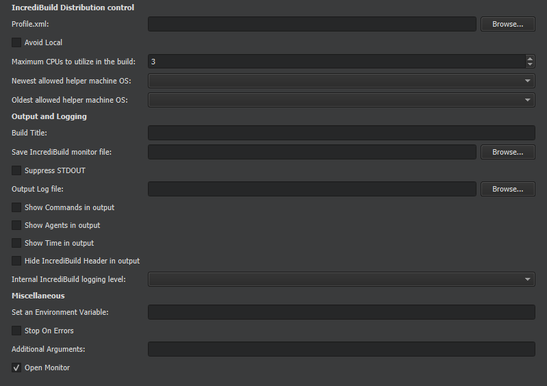 command line switch, which controls the number of processes that the build tools executed by Qt Creator run in parallel. The default value set by IncrediBuild is 200.