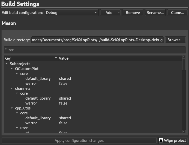 You specify build settings in the Projects mode. To add a new build configuration, click Add and select the type of configuration you would like to add. The options you have depend on the build system that you selected for the project. You can add as many build configurations as you need. You can also select Clone to add a build configuration that is based on the currently selected one.