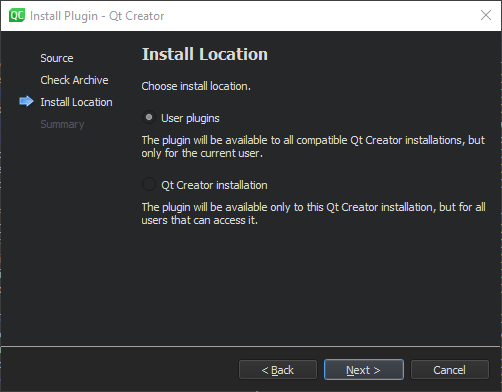 You can also install additional plugins that you downloaded from Qt Marketplace or some other source, such as GitHub .
